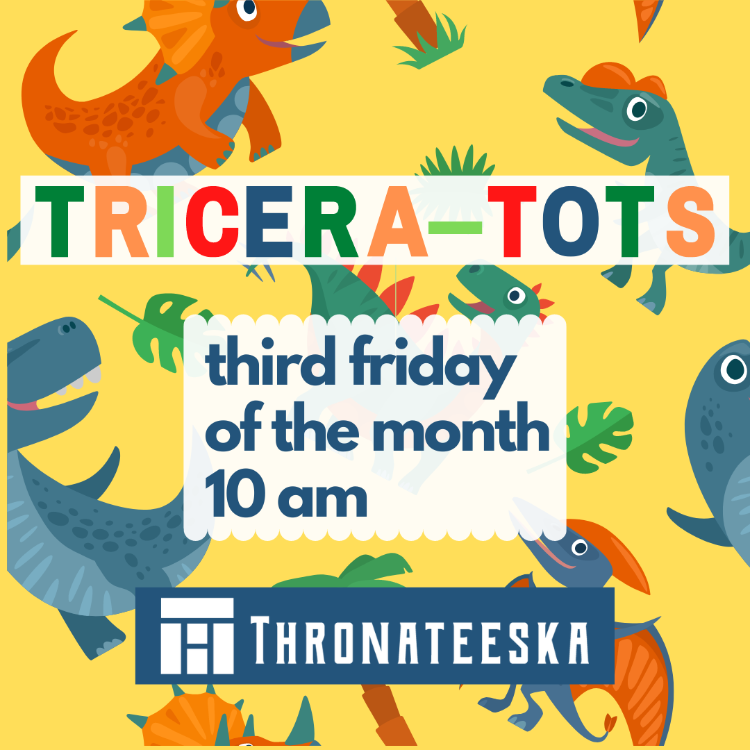Tricera-Tots includes a story, a craft, and a special science lesson/exhibit visit geared to 3-4 year-olds, although all ages are welcome to join in! Tricera-Tots is included with admission and FREE to Thronateeska members.